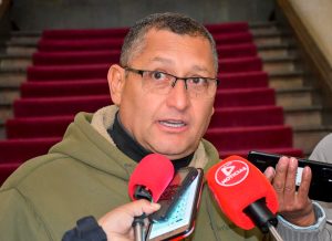 En un acto en la puerta de la gobernación, el Gobernador del Departamento de Tarija, Oscar Montes Barzón, junto a...